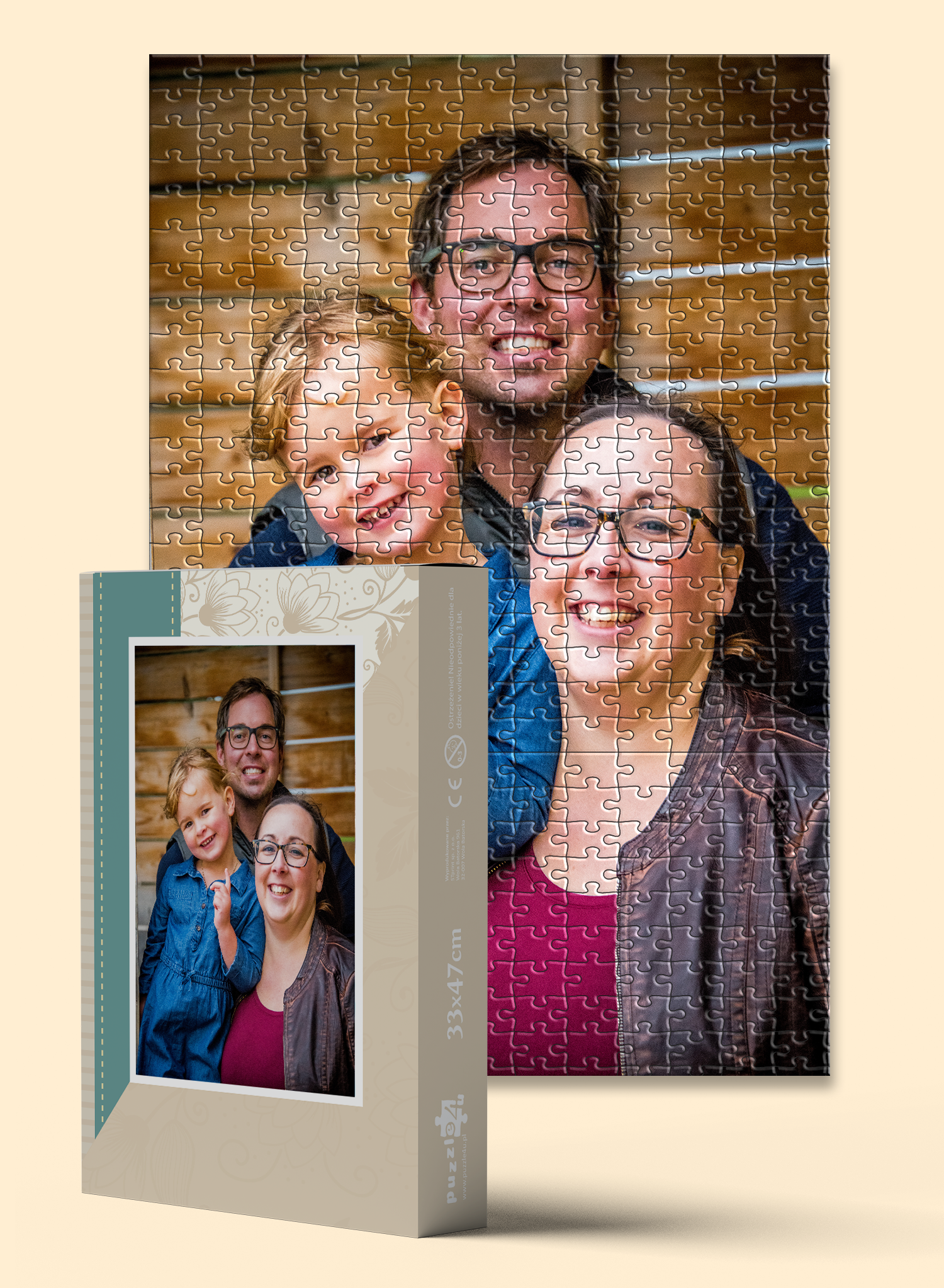 In our offer you'll find puzzles of 500 pieces, that will bring happiness to everyone - big and small, beginner or advanced in jigsaw puzzles. Create your own photo puzzles in a matter of minutes - make a perfect souvenir, a memory of physical form: a family portrait, funny every day snaps, or vacation trips. With our online wizard, you can customize your selected photo, add text, a design of your choice, filters or cliparts. Additionaly, you can pick from a variety of box designs - to which you can also add your own text and design. It'll be a unique, one of a kind product, that no one else can have.