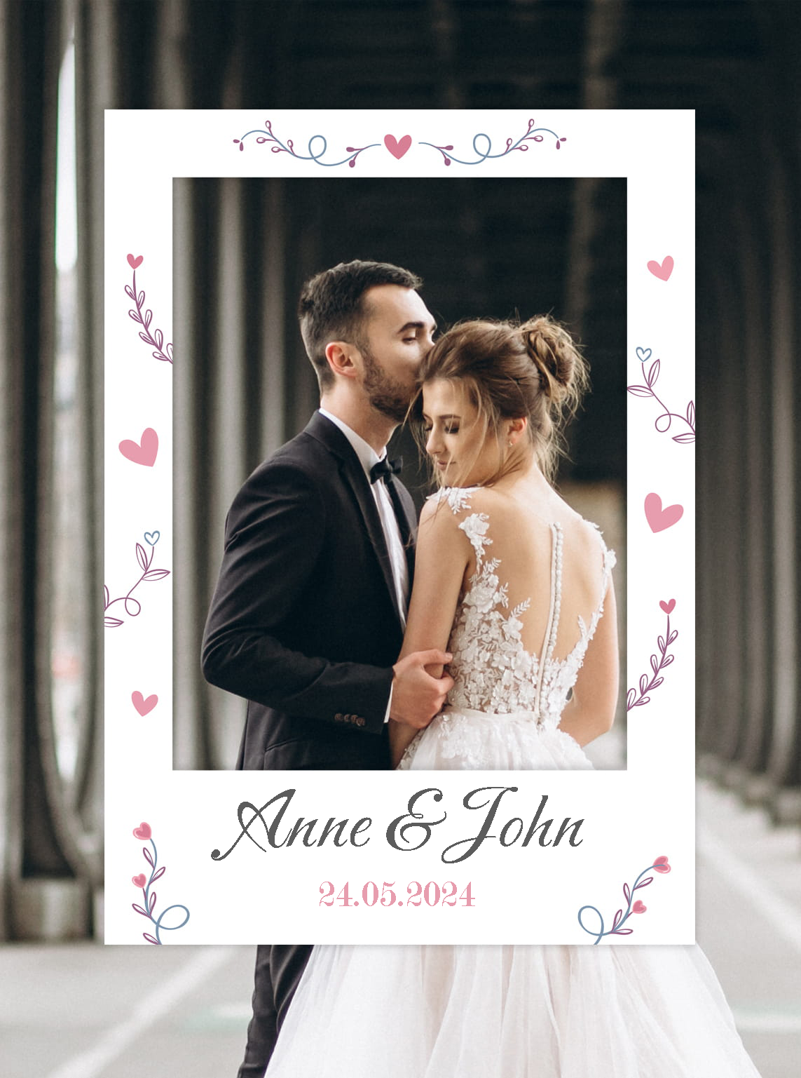 Photo frame for taking pictures HEARTS - customisable writing