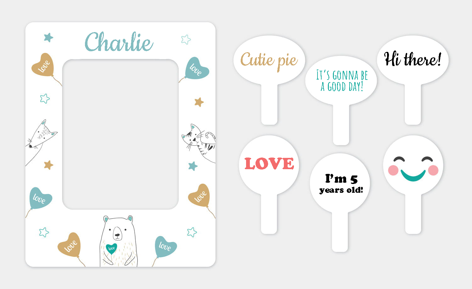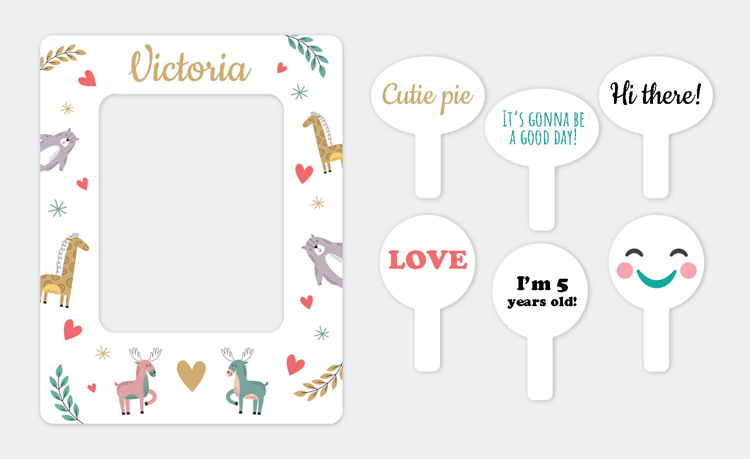 Photo set for a child 2 in 1 - Photo frame and plates will make a photo session more attractive by giving it a unique character. The set is also a great photo gadget for a child, for example, on the occasion of a birthday or name day.