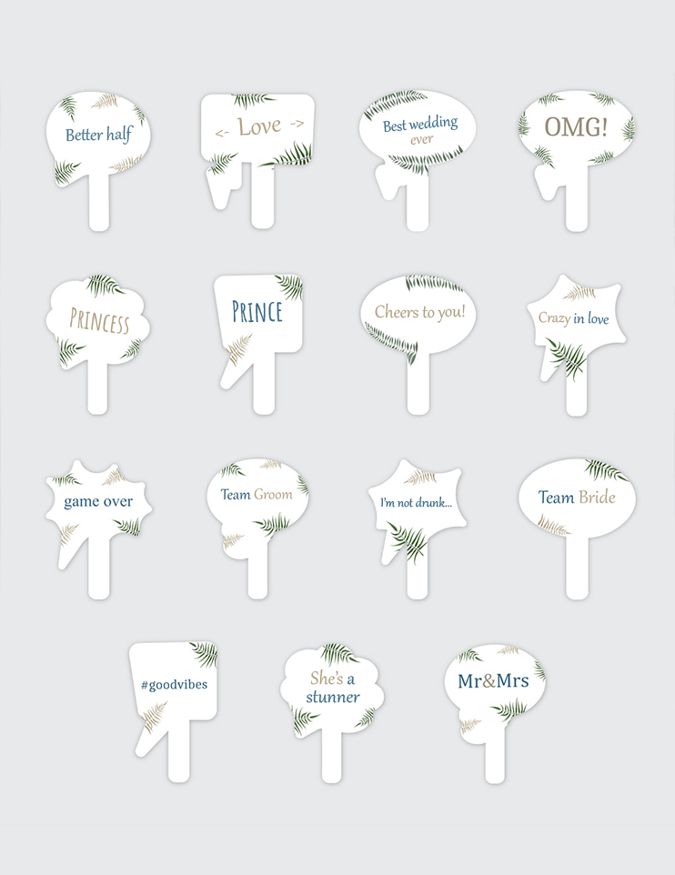 Set of 15 printed photo plates - they will make your photo session more attractive by giving it a unique character. This is a great gadget for a wedding photo booth.